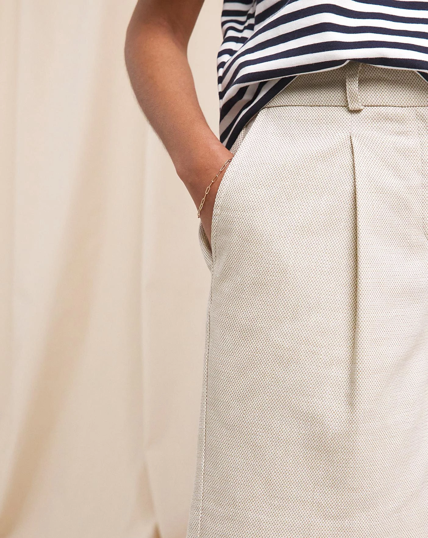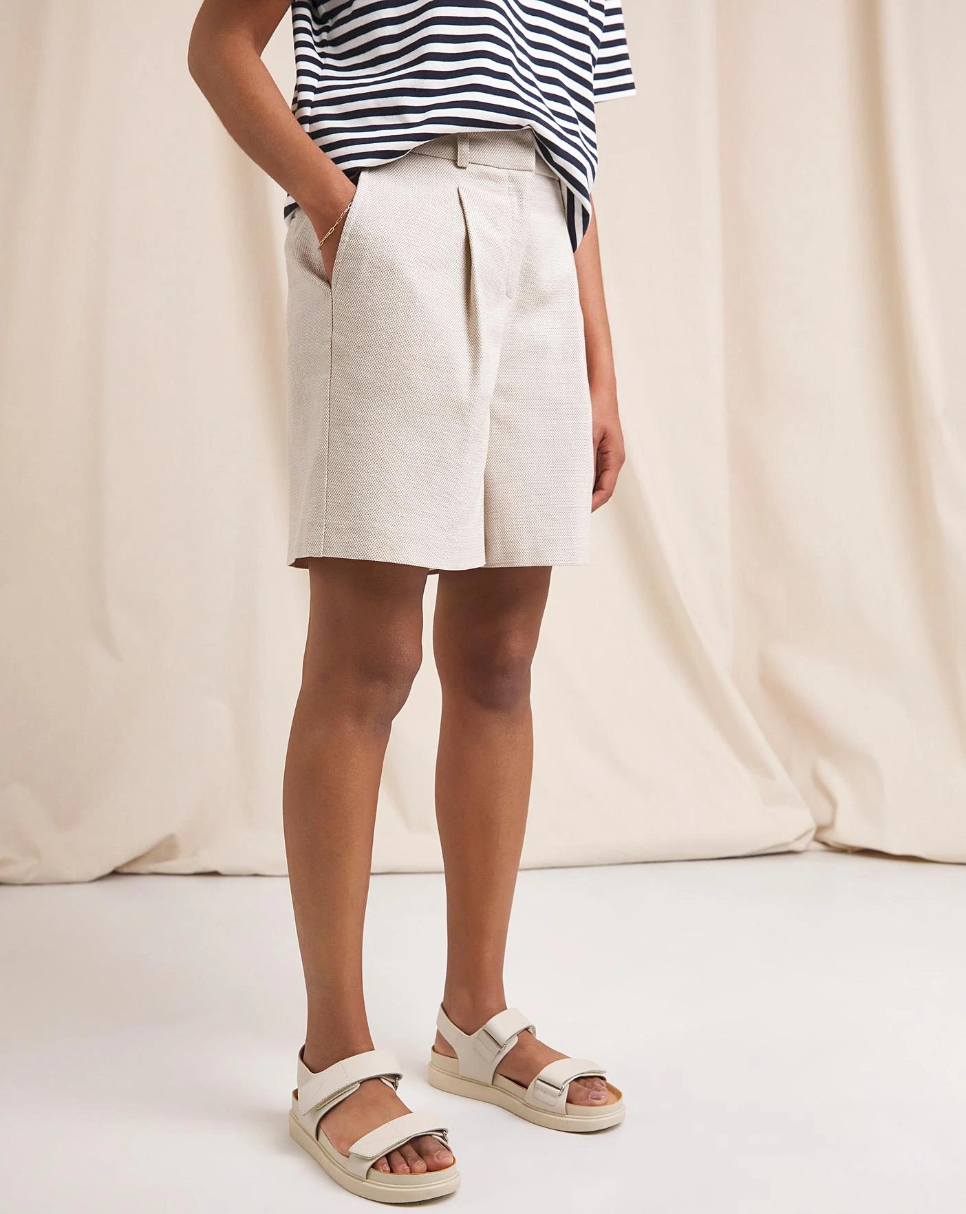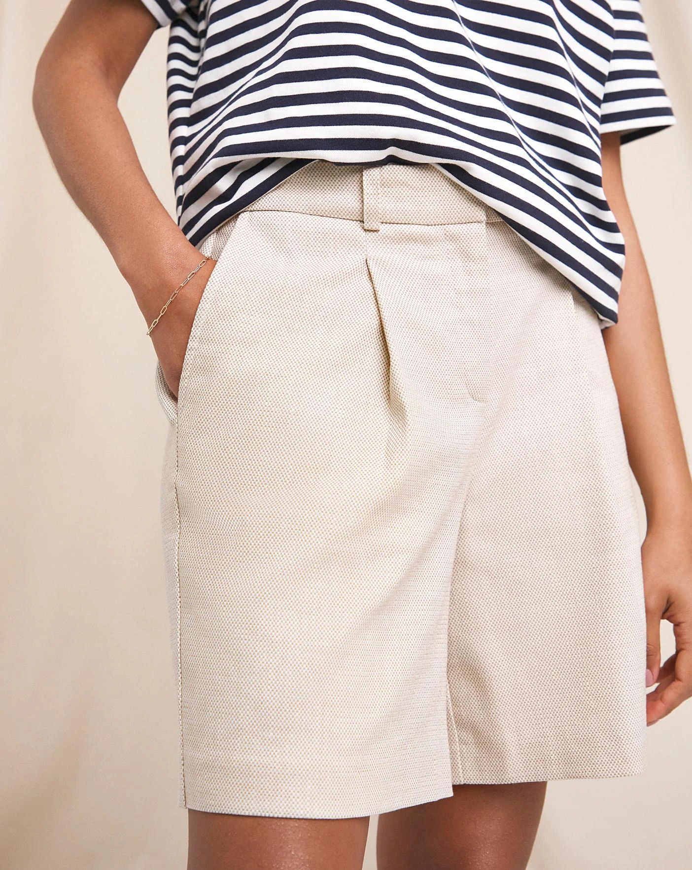 Offering unique work to weekend flexibility, the elegant Bryony city shorts are ideal for dressing up or down. Her delicate structure provides smooth movement and rich breathability. Wear with our striped Aster tee and your favourite sandals for warm beachside brunches.