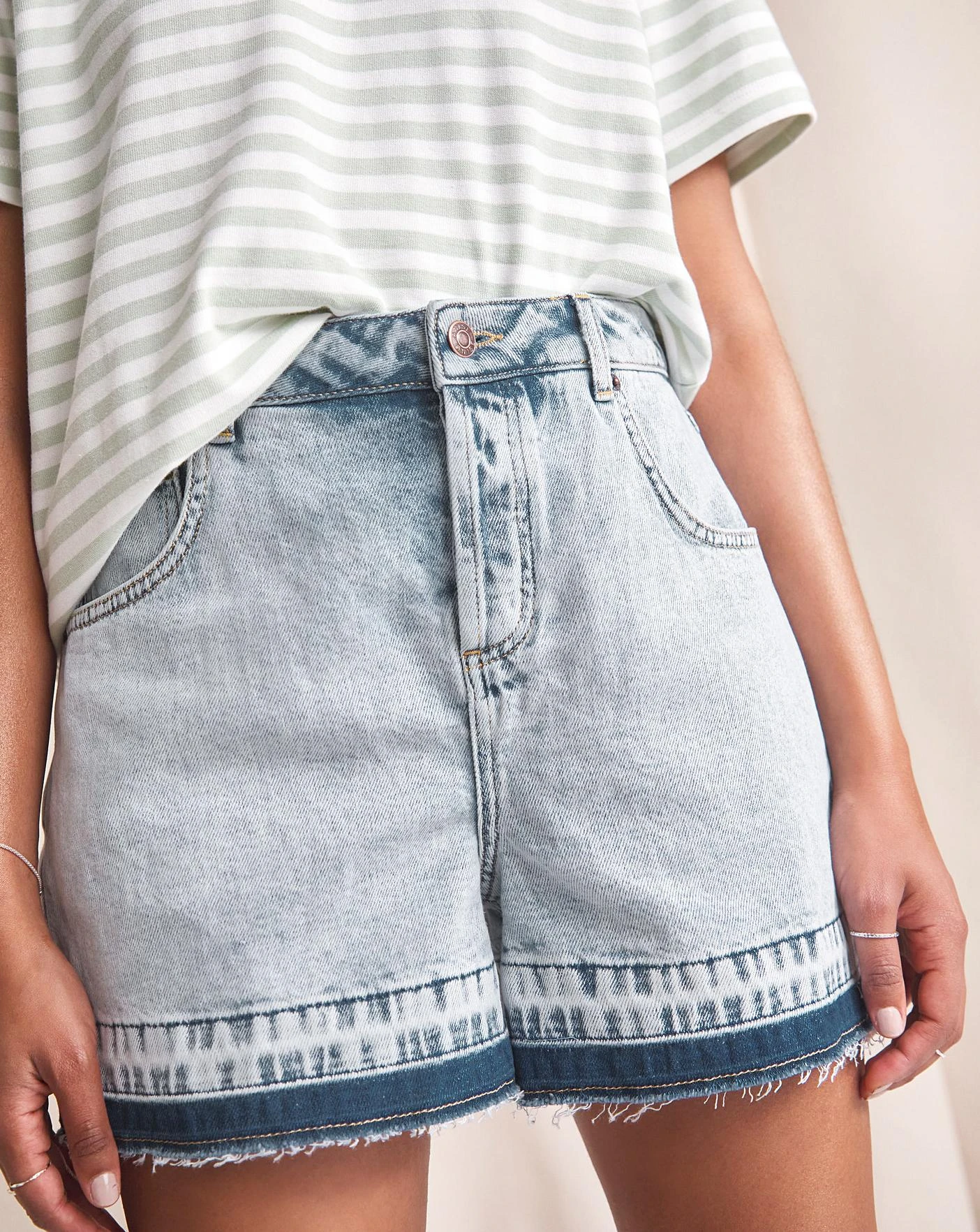 Every summertime wardrobe needs our Iris denim shorts. Her high-waisted fit and ultra-flattering shape guarantees all-day comfort and easy movement in warmer weather. For an effortless seasonal look, wear with chunky sandals and our sage gren Aster t-shirt.