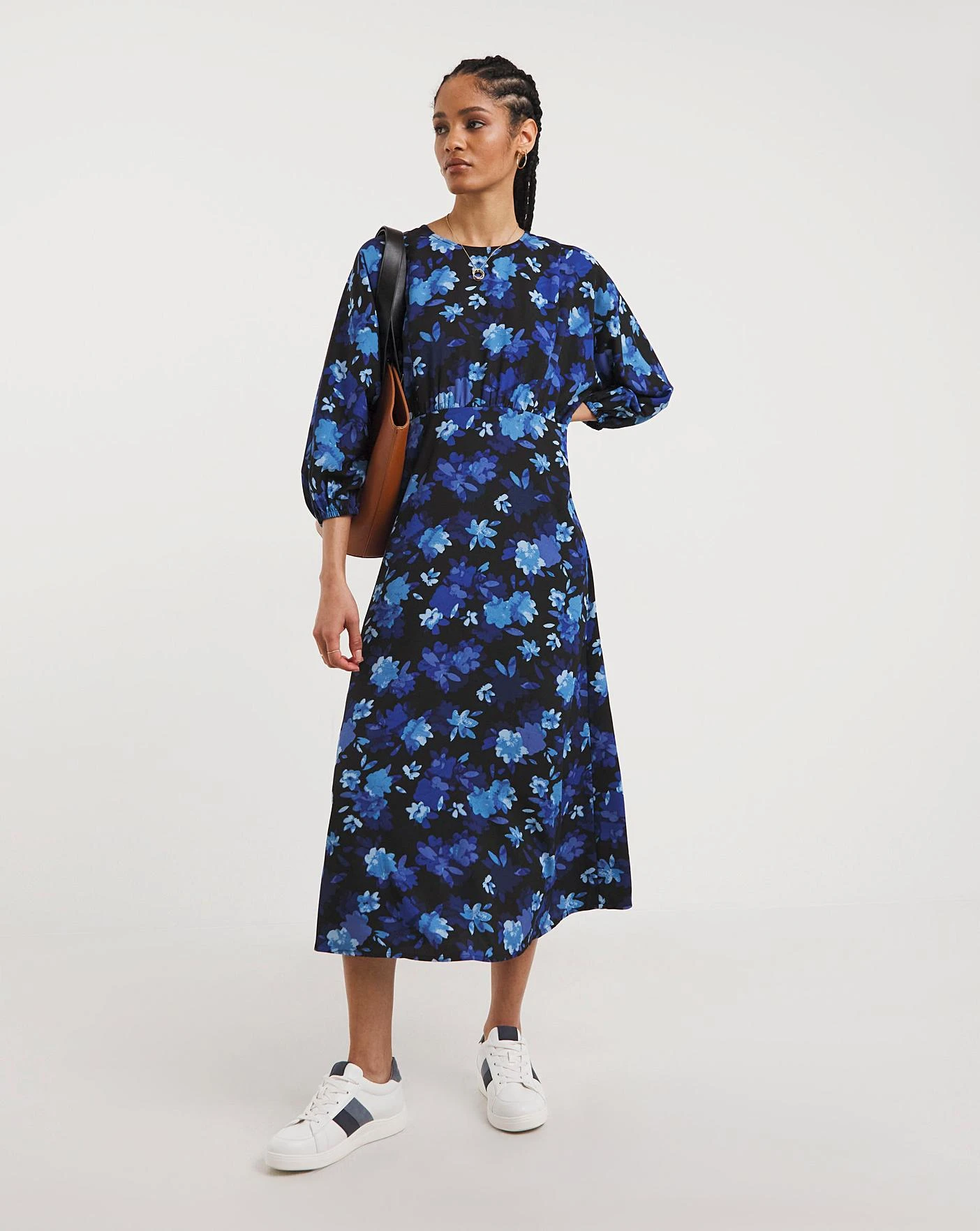 Stand out this season in this gorgeous floral print tea dress that is great for any occasion. Designed with three-quarter balloon sleeves with elasticated cuffs, an elasticated back seam to ensure comfort and a classic round neckline. Wear multiple ways by dressing down with comfy trainers for a casual look or elevate the look with heels.