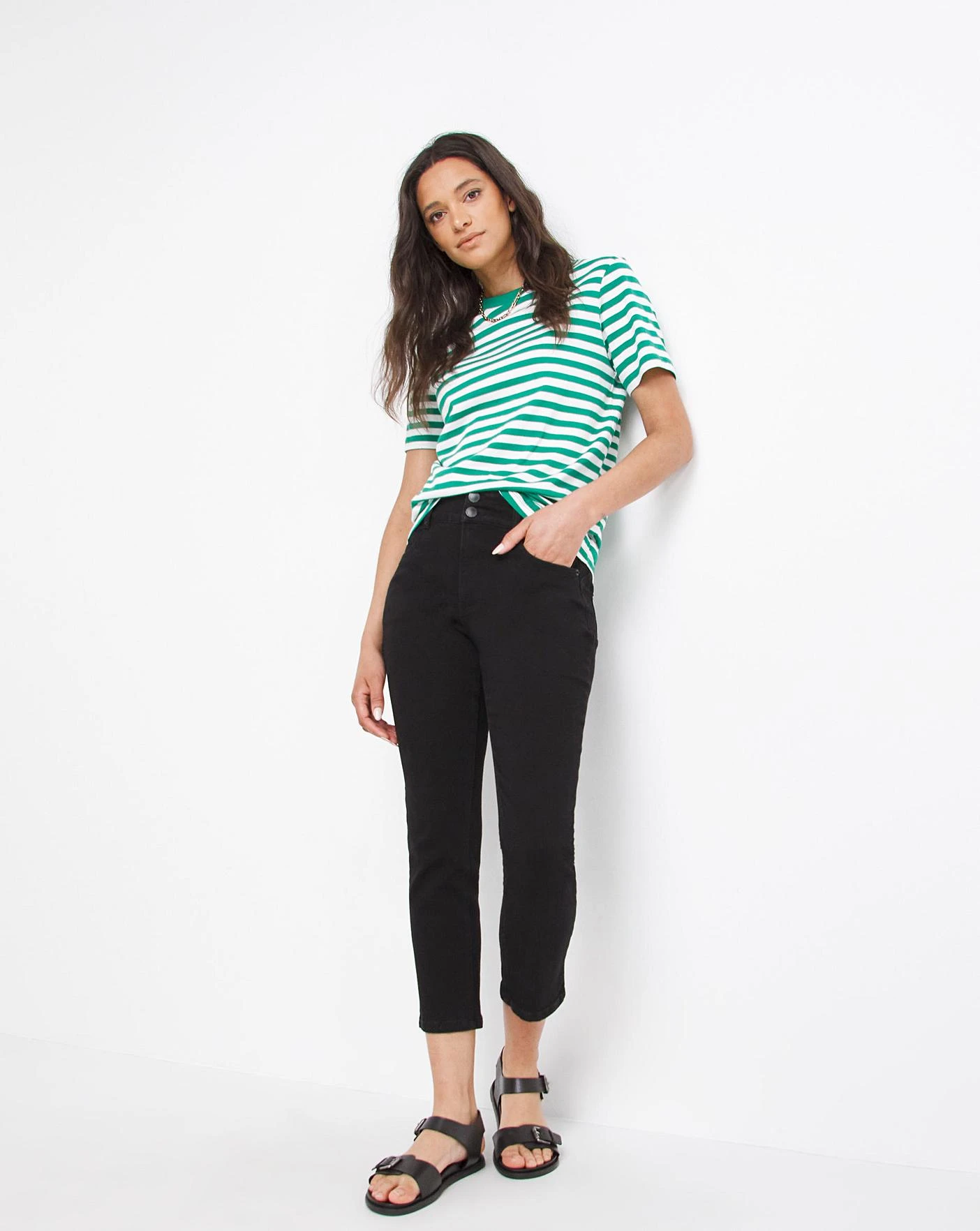 New and you need them! Our premium Dream Sculpt jeans, are innovatively designed to flatter your figure and enhance your curves. Created with intelligent seaming to define and lift you in all the right places. The high waist fit and hidden tummy panel helps to smooth your stomach, and give flattering support. Our premium stretch denim made with REPREVE® recycled polyester, provides a comfortable yet stylish fit, featuring a cropped, straight leg shape.