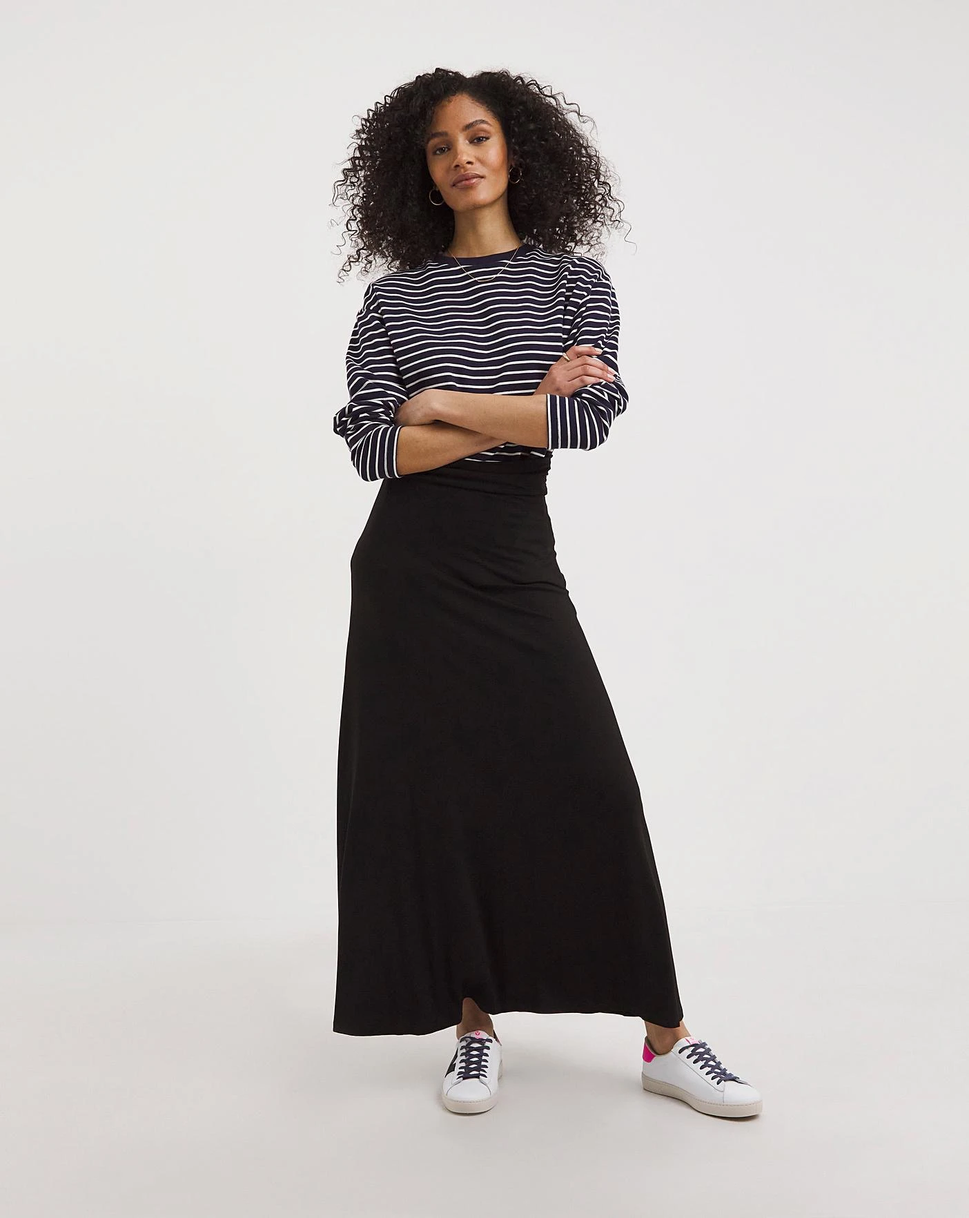 Our jersey maxi skirt is made from our super stretchy, comfortable jersey fabric. A really easy to wear, pull on style featuring a flowy maxi skirt and a wide waistband to help flatten the tummy making this a super flattering style. The classic maxi skirt is a true staple for any womens wardrobe and this version is the perfect balance of comfort and style.