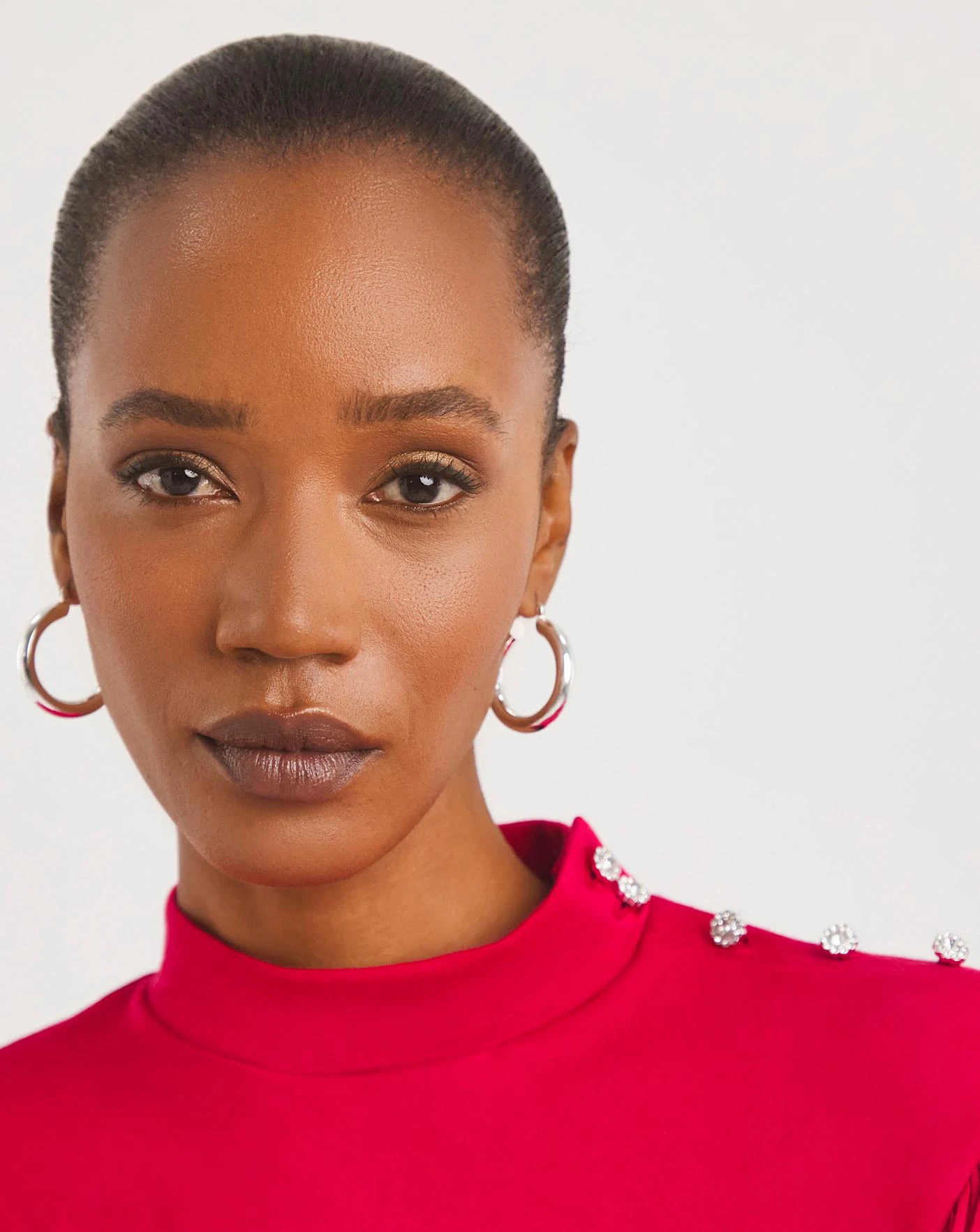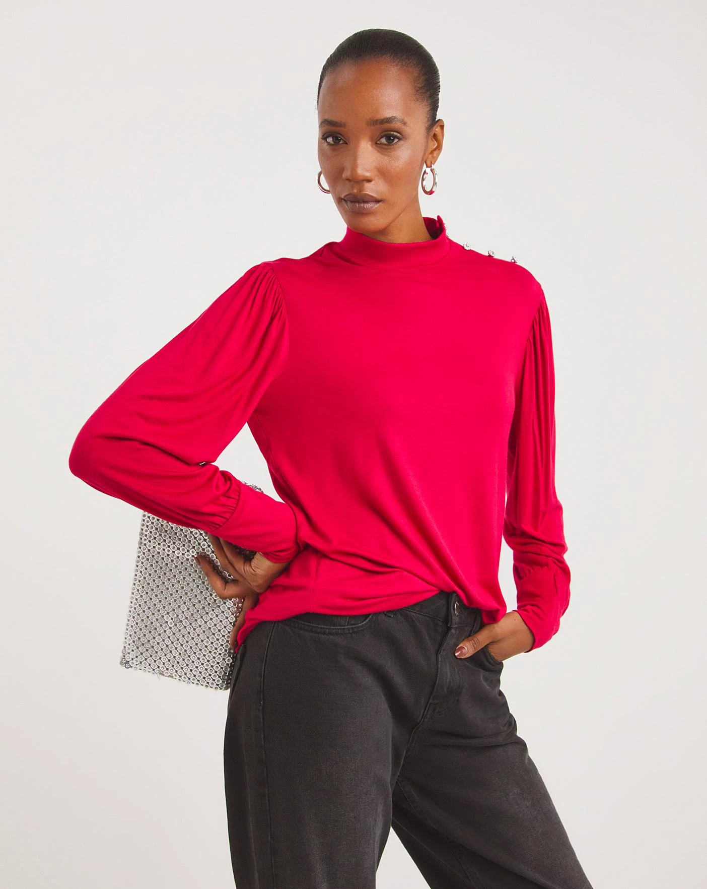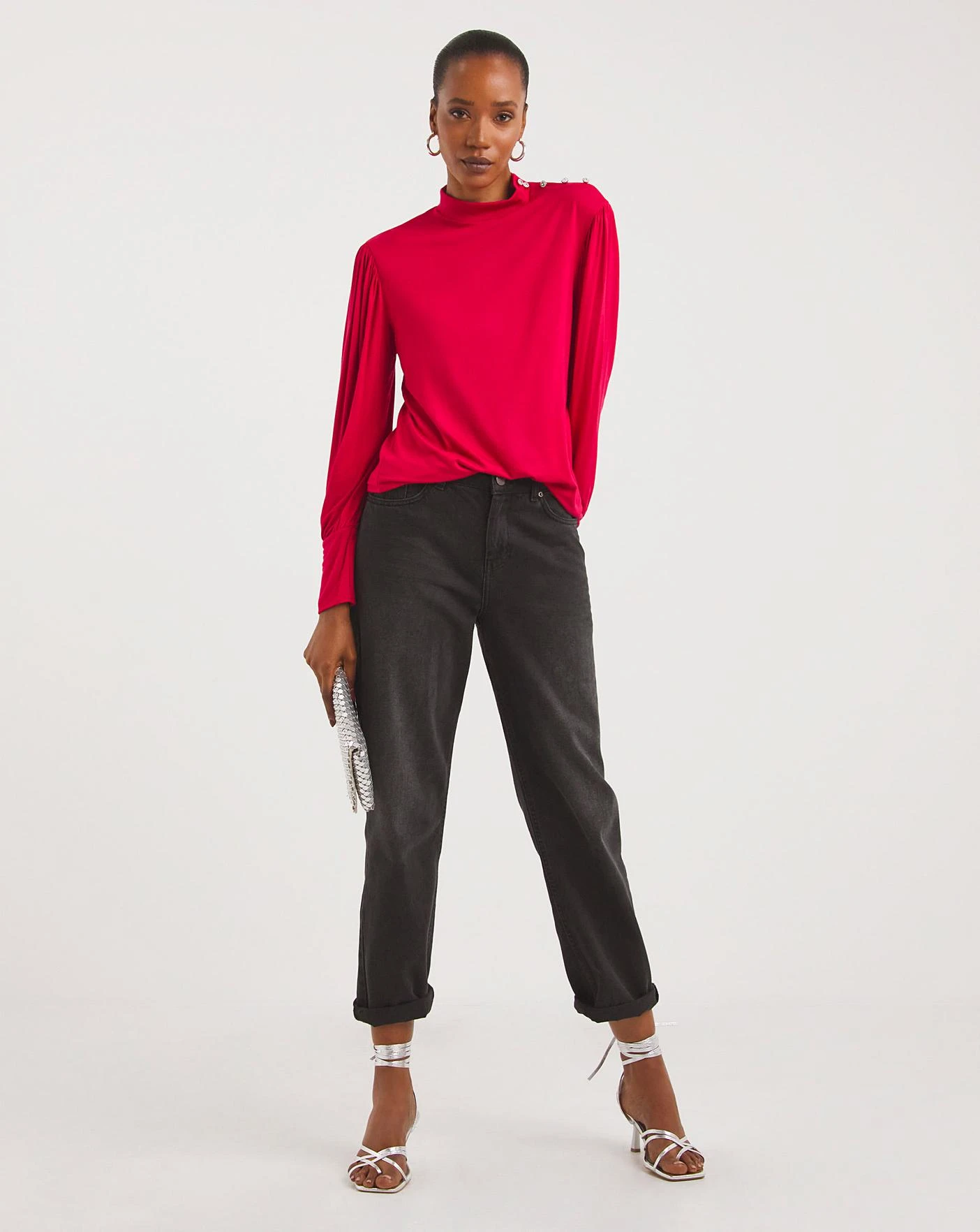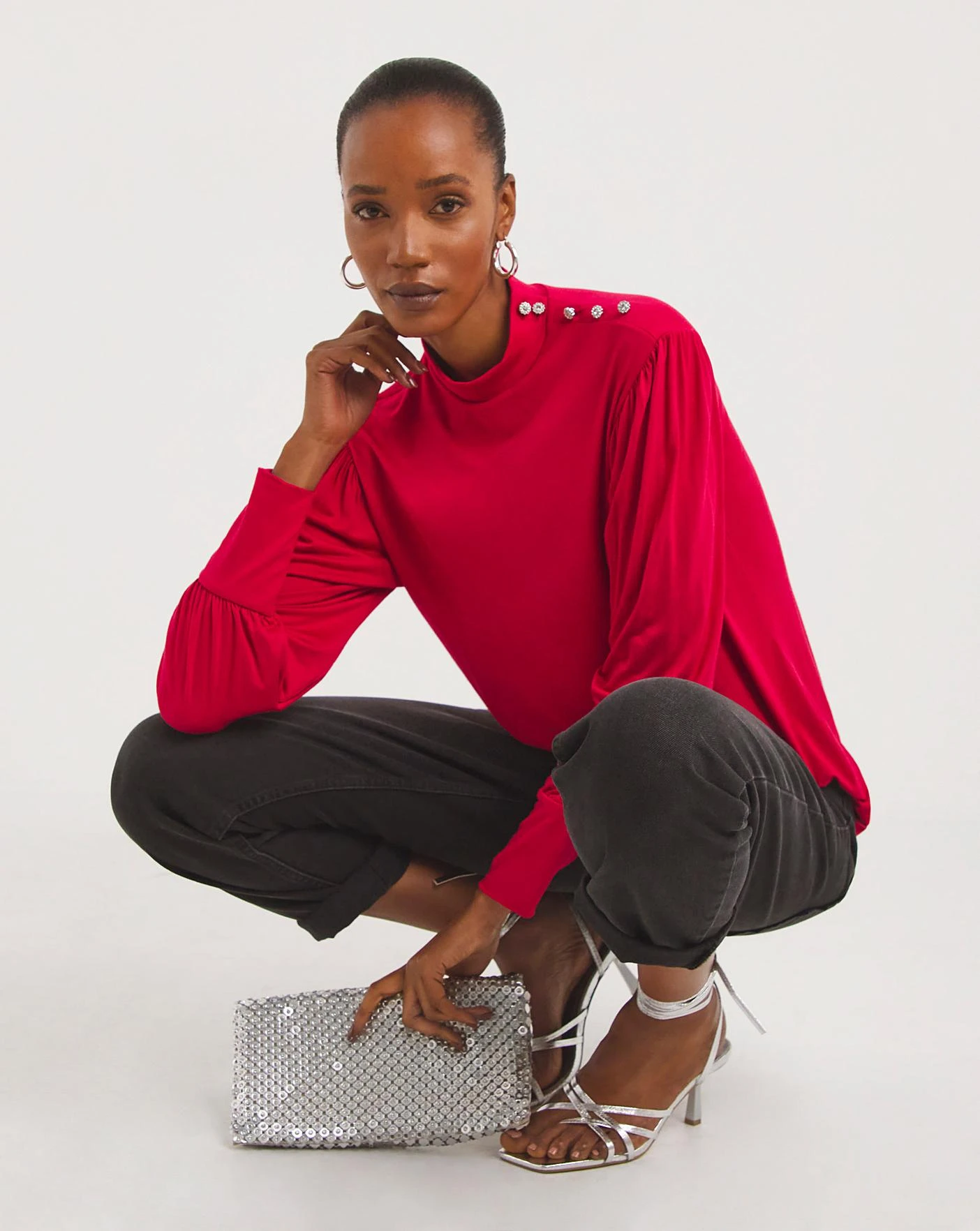 Make a statement in our high neck embellished top! Carefully designed with long sleeves and beautifully detailed embellishment on the neck. Pair with denim jeans and trainers/heels to dress up or down!