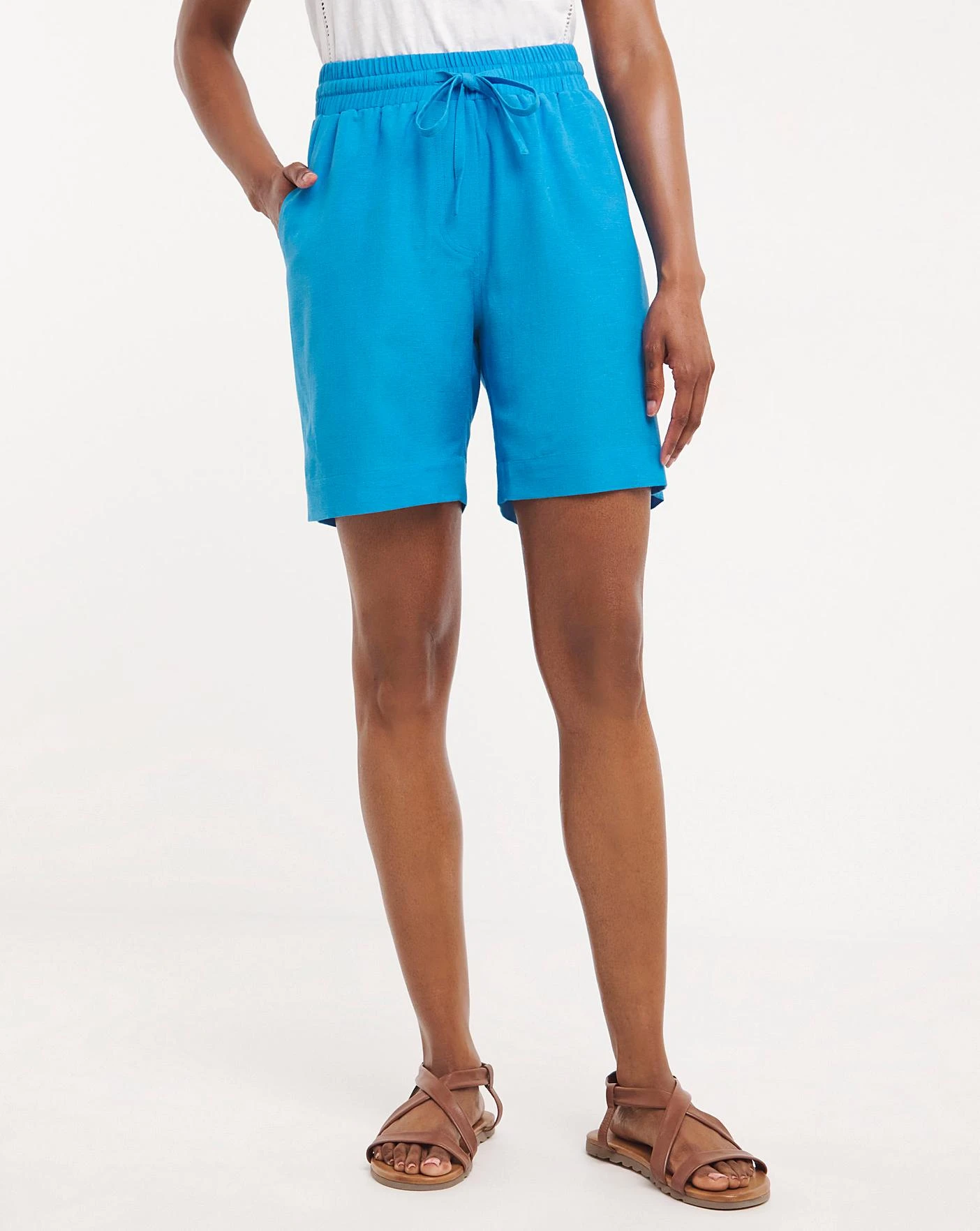 Knee length shorts are flattering and really easy to wear with your favourite tee this summer. In our well loved linen fabric, these shorts are comfortable, breathable and feature an elasticated pull on waist for ease. A true wardrobe essential for summer, these shorts will slot into your everyday wardrobe and are also perfect for holidays. Find these shorts in multiple colours.