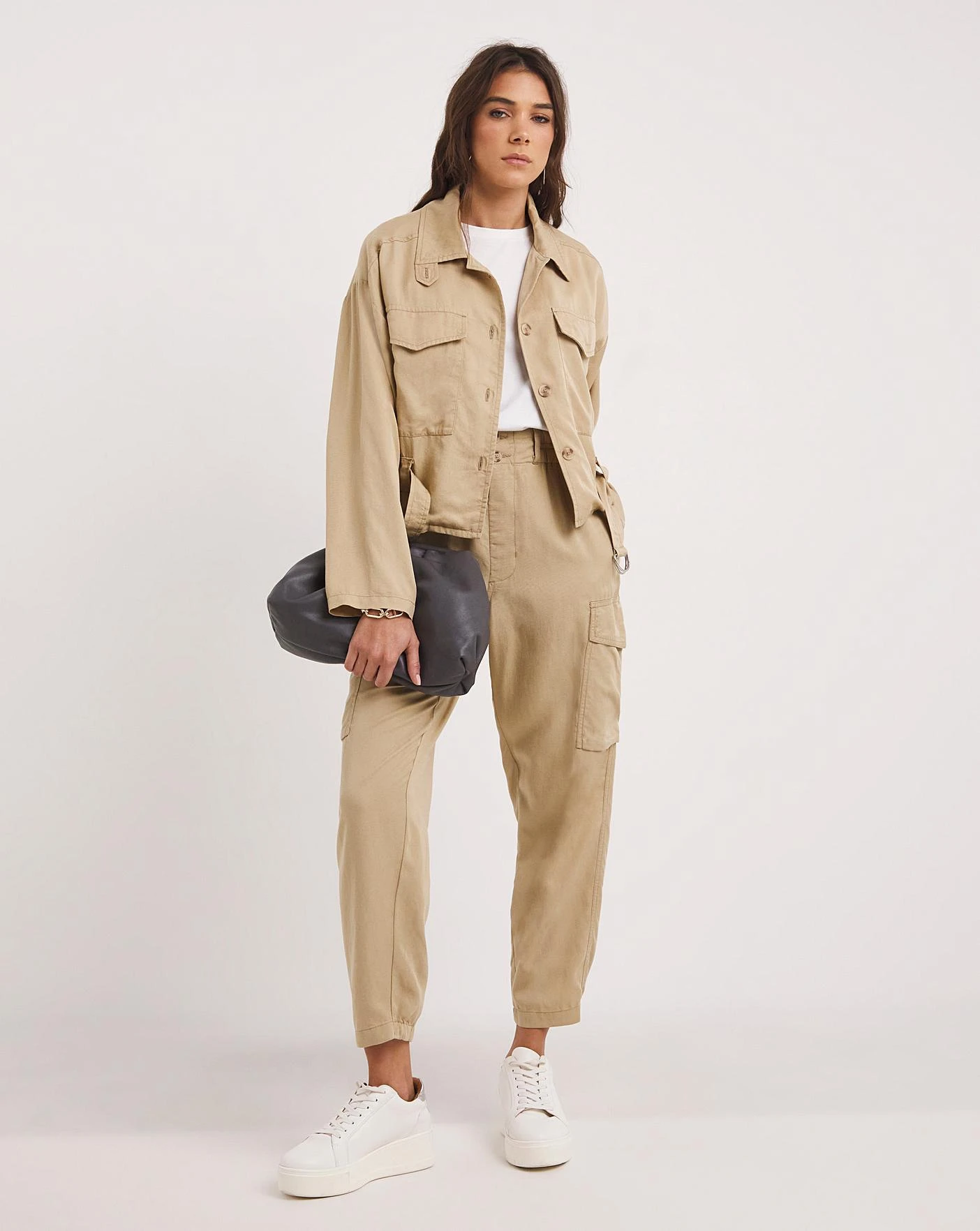 Is your wardrobe ready for our Elkie Twill Combat Trousers? A strong and stylish pairwhich look the part and are a practical dream too. These straight leg trousers are hosted by a comfortable elasticated waistband whilst 2 functional pockets present themselves upon the legs and a faux flap sits on the back. Utmost utility whilst donning a smart and chic appearance for day come dusk.