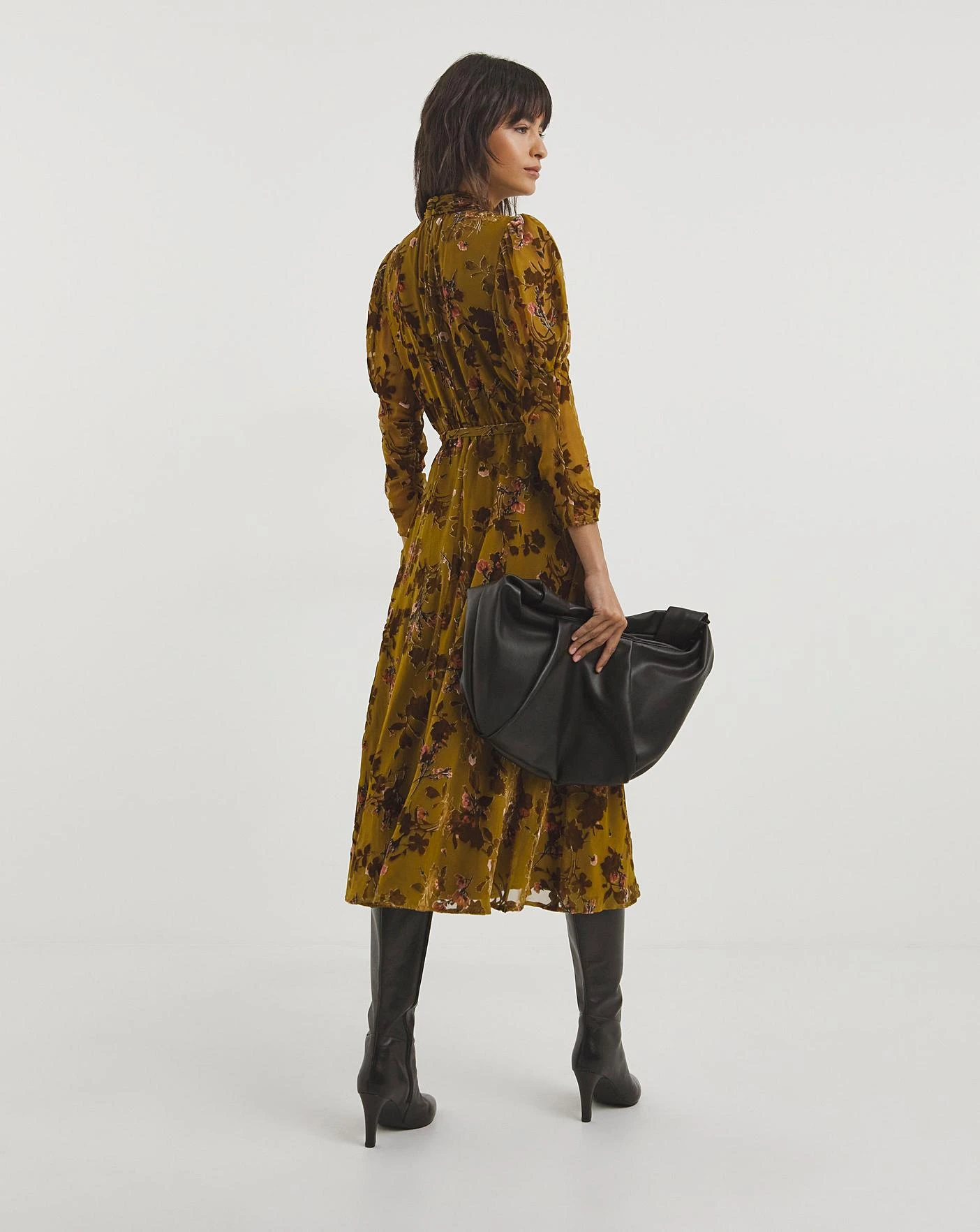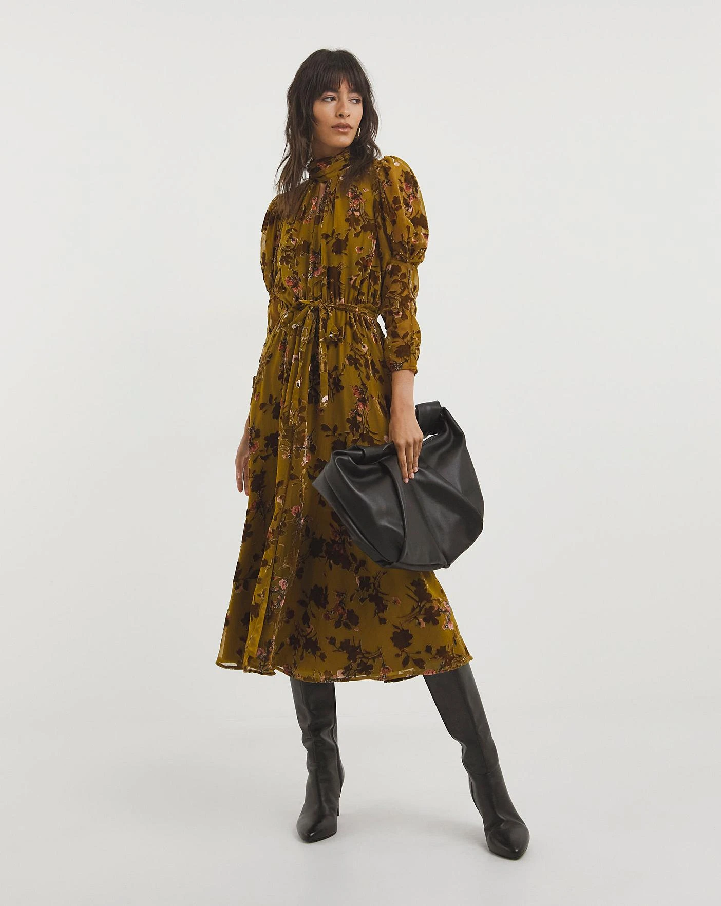 The Guthern Burn Out Belted Long-Sleeve Dress has a high neckline keyhole chest detail and bold balloon sleeves. The belted middle nips in a style with plenty of movement. Let the statement high collar and curved cuffs standout by simply pairing with knee-high boots.