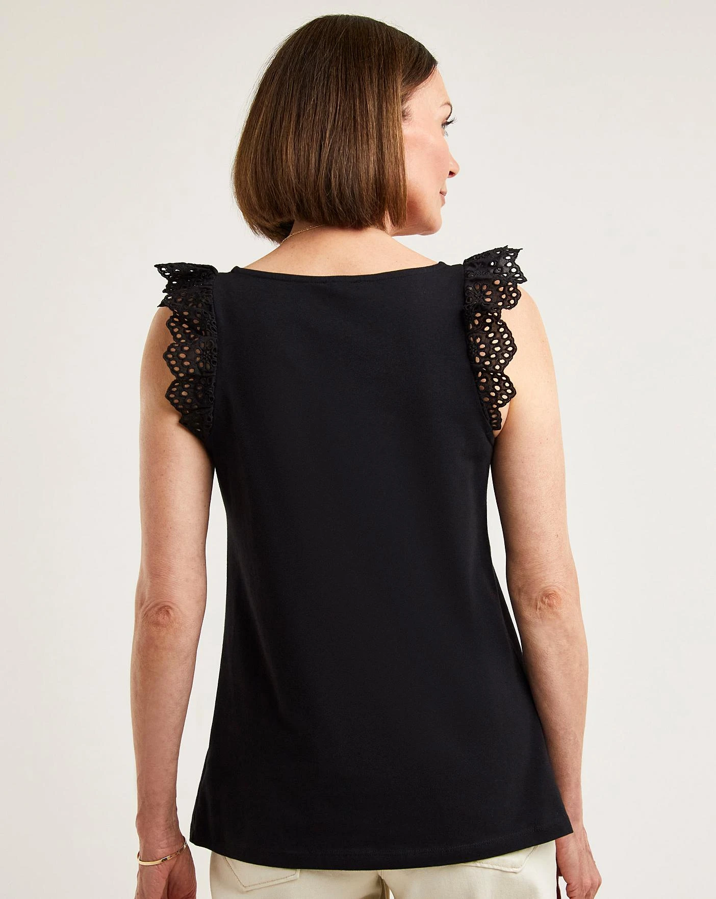 Bring an element of feminine to your everyday wardrobe with this frill sleeve jersey top. Featuring short sleeves and a quare neckline. Pair with your favourite jeans.