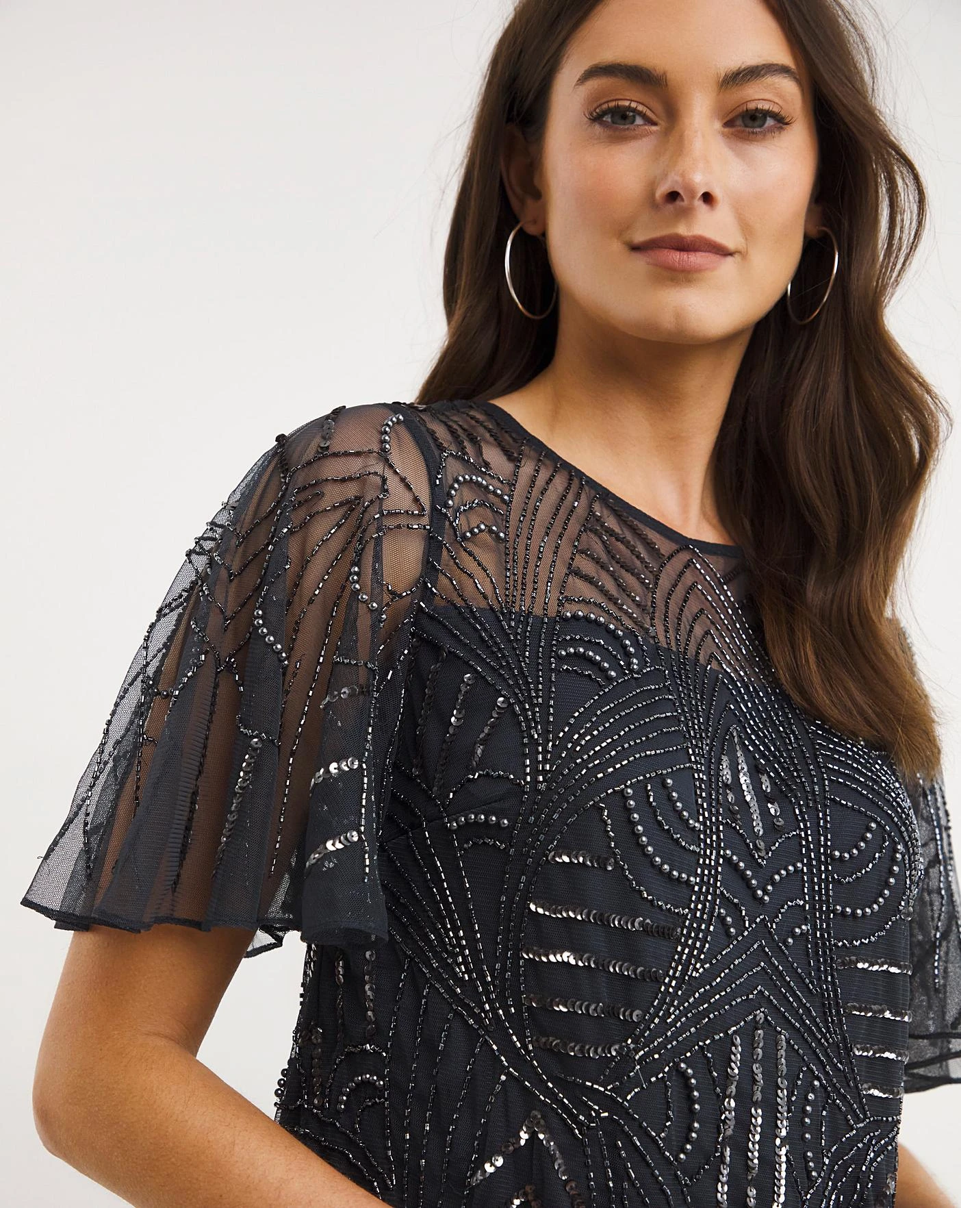 Designed with intricate beading, this Joanna hope beaded top and trouser set is perfect for upcoming occasions and mother of the bride. Cut to an elegant wide leg shape, these high waist, lightweight trousers will ensure you feel comfort all night long. The stretch mesh top is designed with hand beaded embellishment and short sleeves.