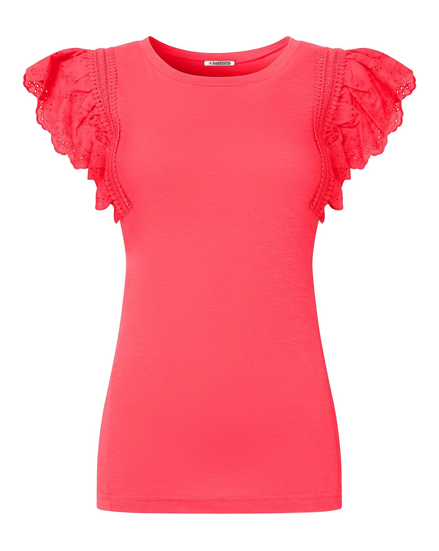 Bring that something extra to your usual jeans-tee combo with this fabulous statement-sleeved top. Soft, flattering and easy to wear, we love how the broderie frills help this tshirt make a real impact. In a classic shade of pink, it’ll match effortlessly with any ensemble.