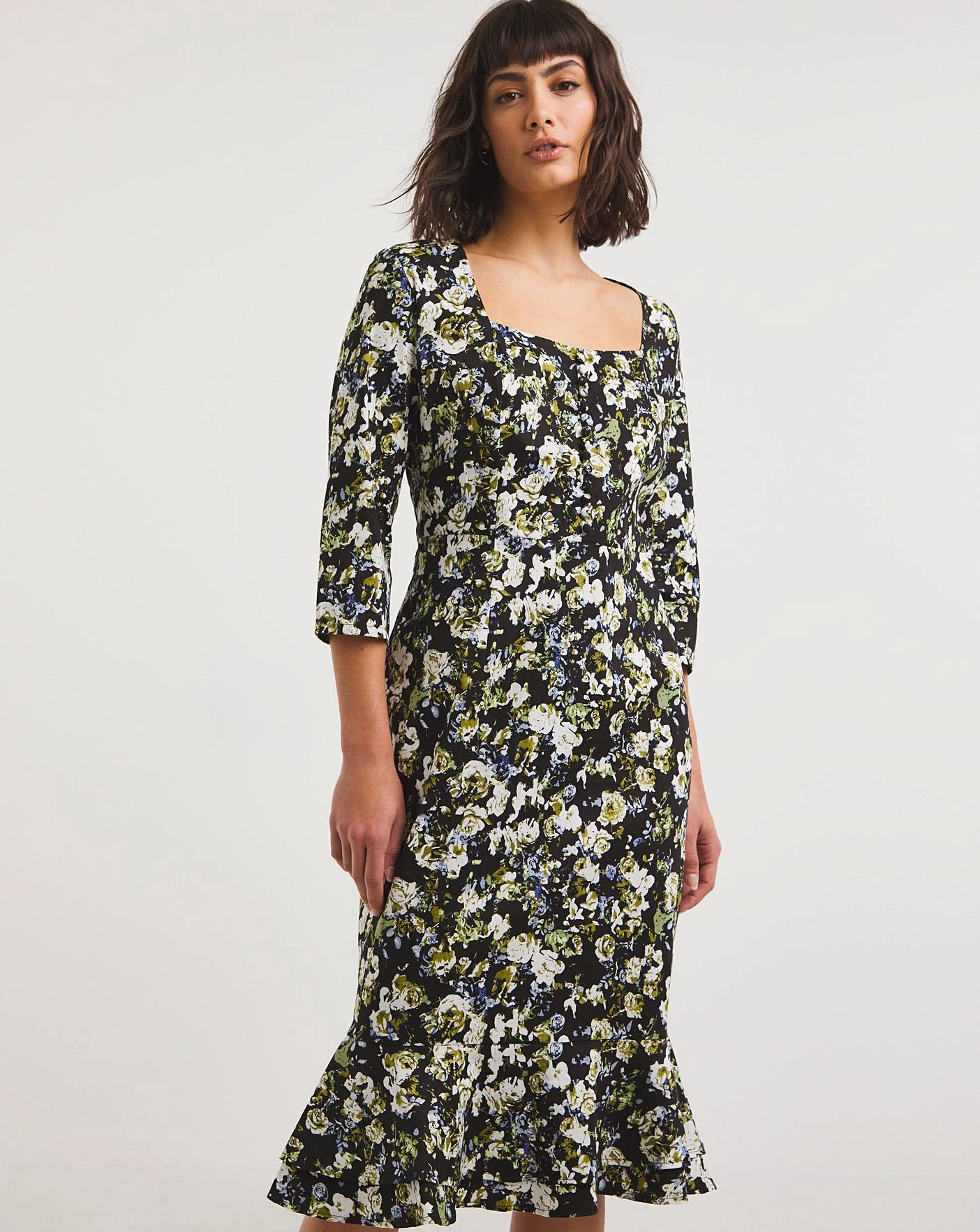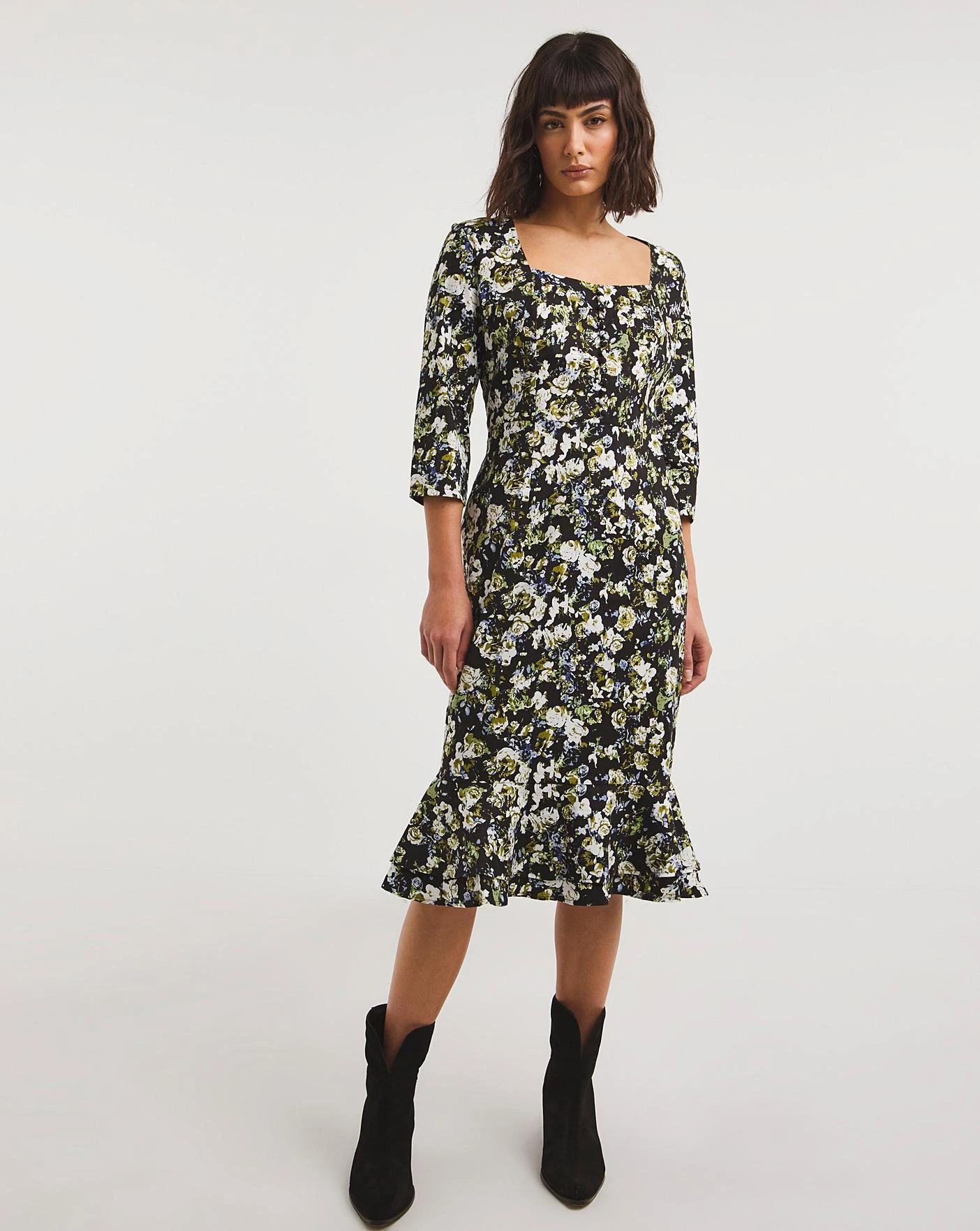 Who’s ready to wear our ravishing rose print dress? Rose prints are some of our favourite to work with because they pair perfectly with our vintage cuts. That’s what makes this sultry dress so special, with flattering three quarter sleeves, side gathering and a beautiful neckline.