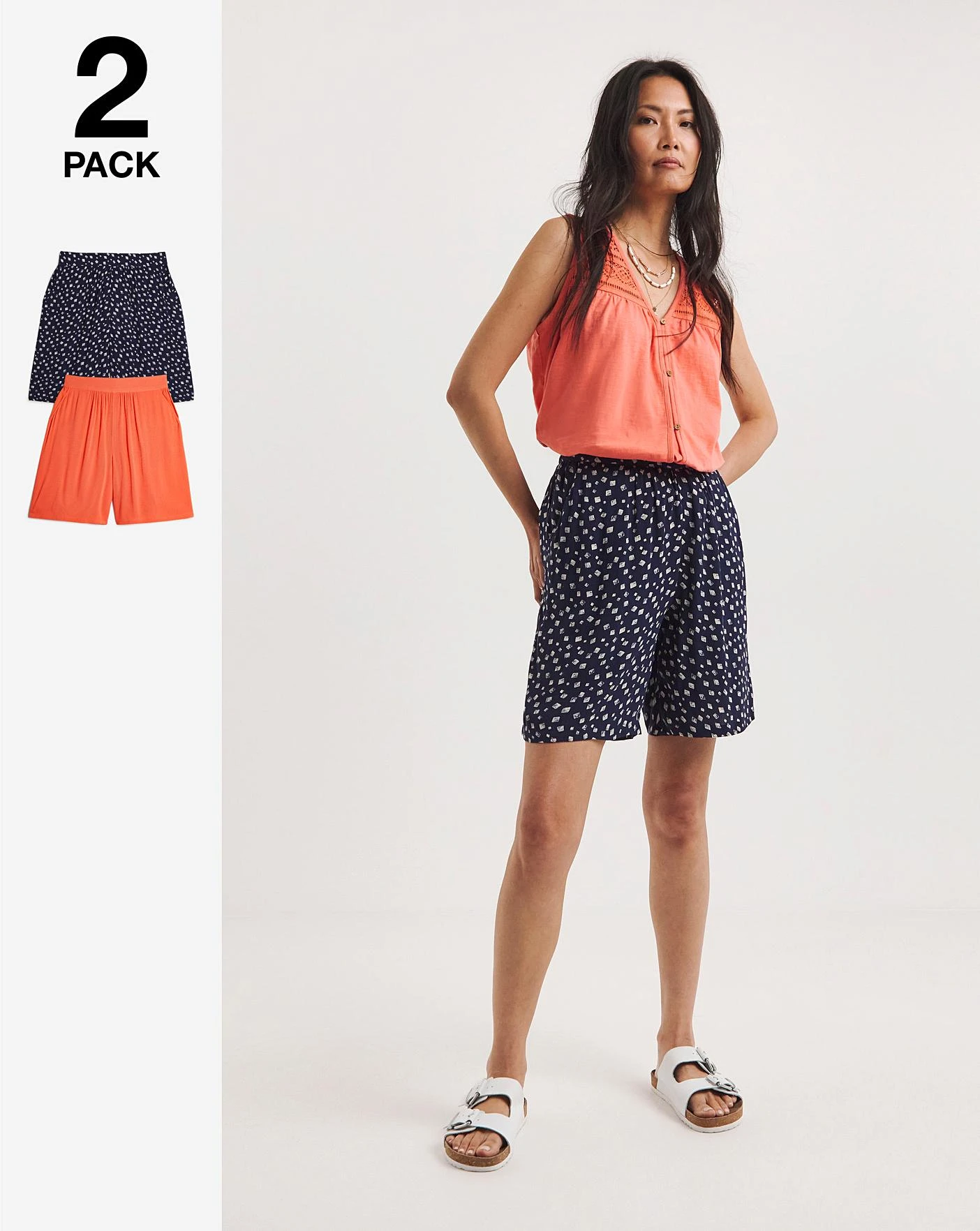 These two-pack crinkle shorts are the perfect summer wardrobe addition. They include one printed pair and one plain. Made from a sustainable crinkle fabric. No ironing needed.