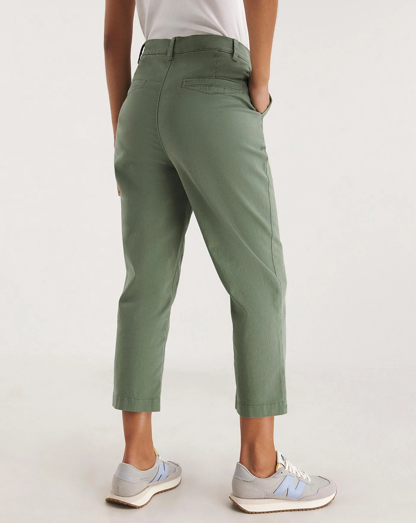 In a cotton rich fabric with added stretch, these cropped chino trousers are not only a lovely addition to your summer wardrobe but they are also super comfy too! Featuring 4 pockets and a super flattering mid calf length with small vent for added movement. Pair with your favourite sandals and holiday top for an effortless classic look.