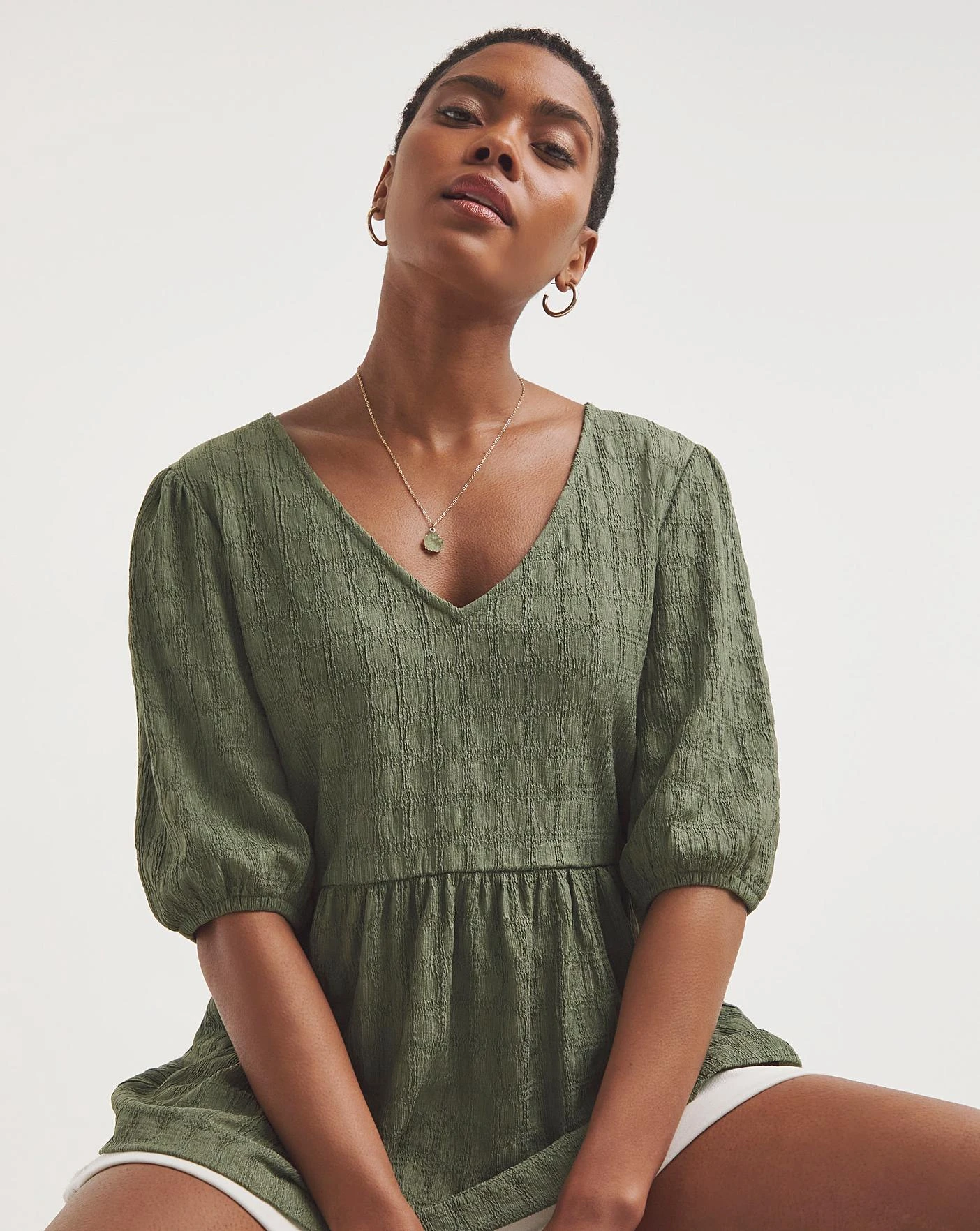 A brand new shape for your wardrobe, this Waffle Texture Puff Sleeve Top fabric provides the ultimate comfort without sacrificing your style. This style is a true must have!