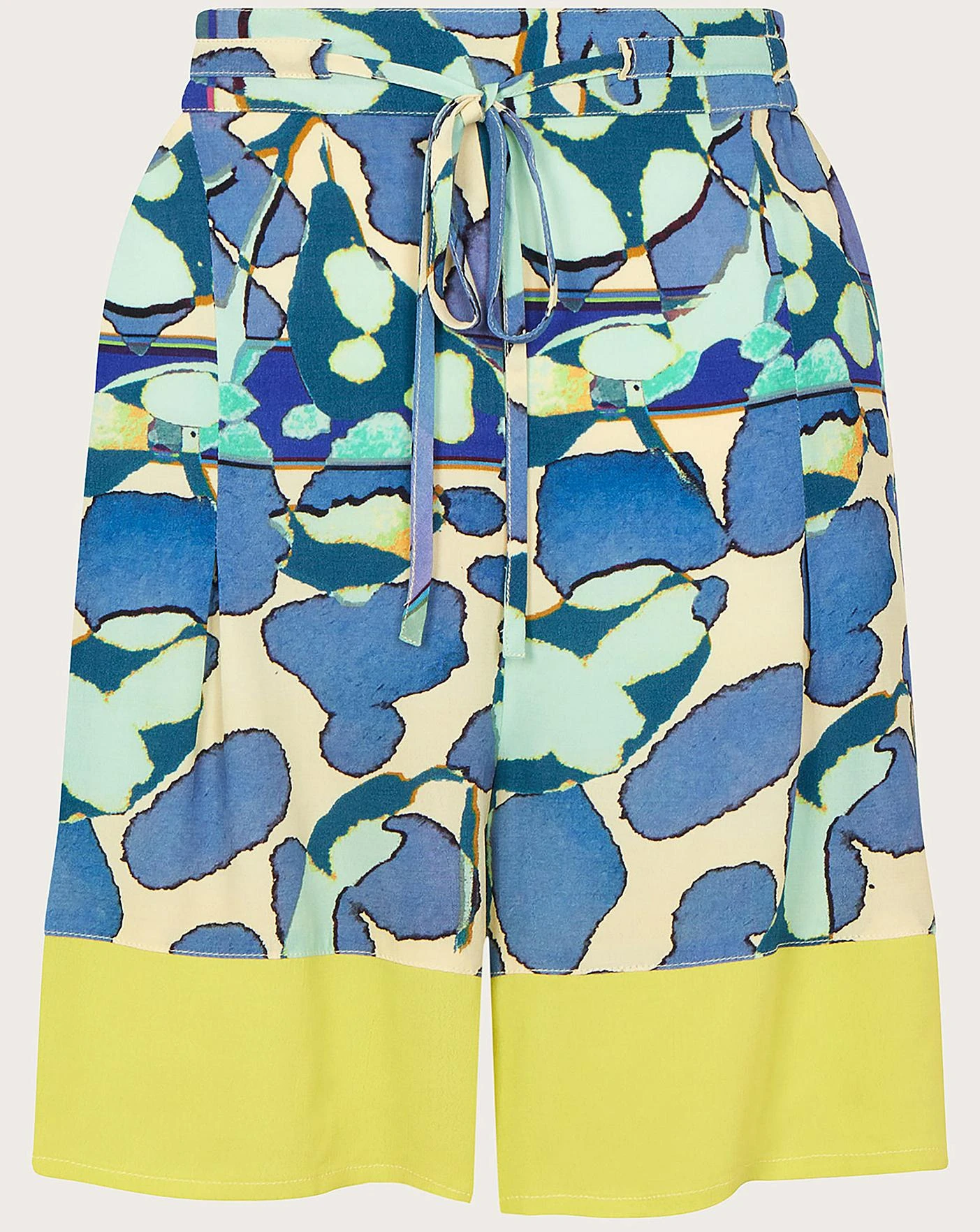 - Introducing Monsoon’s special 50th anniversary collaboration with the future minds of fashion. Designed alongside the students of London College of Fashion, jump into a world of kaleidoscopic prints and mesmerising bold hues, found in every piece – a suitable collection to upgrade your summer wardrobe. Swap out your linen trousers and midi skirts for this pair of shorts. Derived from a punchy print, it’s an elevated style that sits high on the waist before flaring out into a relaxed cut over the thighs. Finished with darted seams, pockets and a tie detail. Matching crop top available.