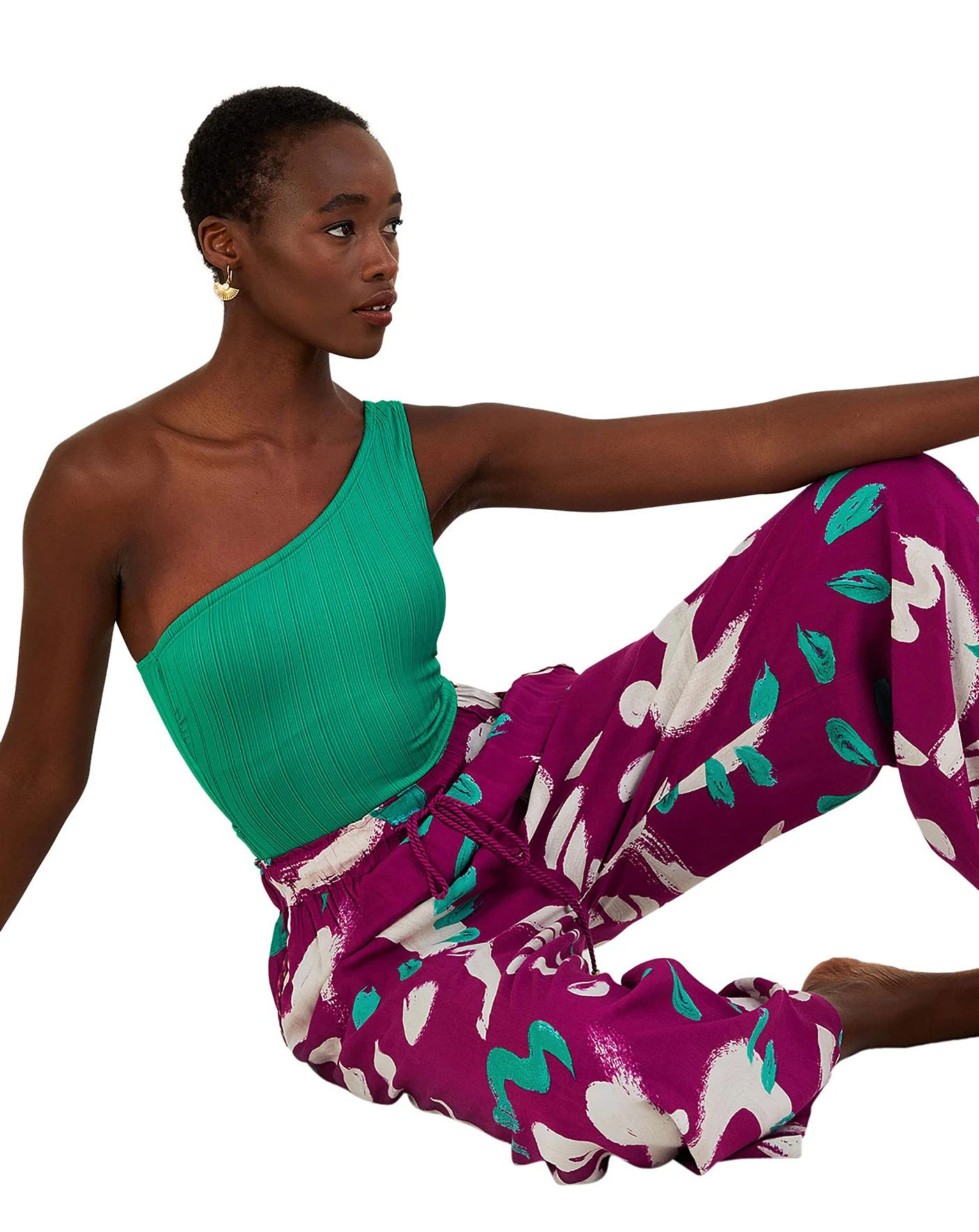 - Heatwave pending…Hot weather dressing is made easier than ever with these bright and beautiful trousers, finished with an elasticated waistband. The wide leg profile will sway in the breeze, keeping you cool as you take to the beach with your sandals in hand. LENZING ECOVERO is a sustainable fabric derived from certified renewable wood sources and made using eco-responsible production methods. It generates up to 50% lower emissions and water impact than traditional viscose, contributing to a cleaner environment. Just one of our steps towards a future for sustainable fashion, we introduce S.E.W: our commitment to using more eco-conscious materials in our ranges. This capsule collection is created using fabrics that are both kinder to the planet and have a reduced environmental impact. You’ll see blends of organic and better-sourced cotton, viscose from more responsibly grown forests and recycled polyesters made from post-consumer waste.