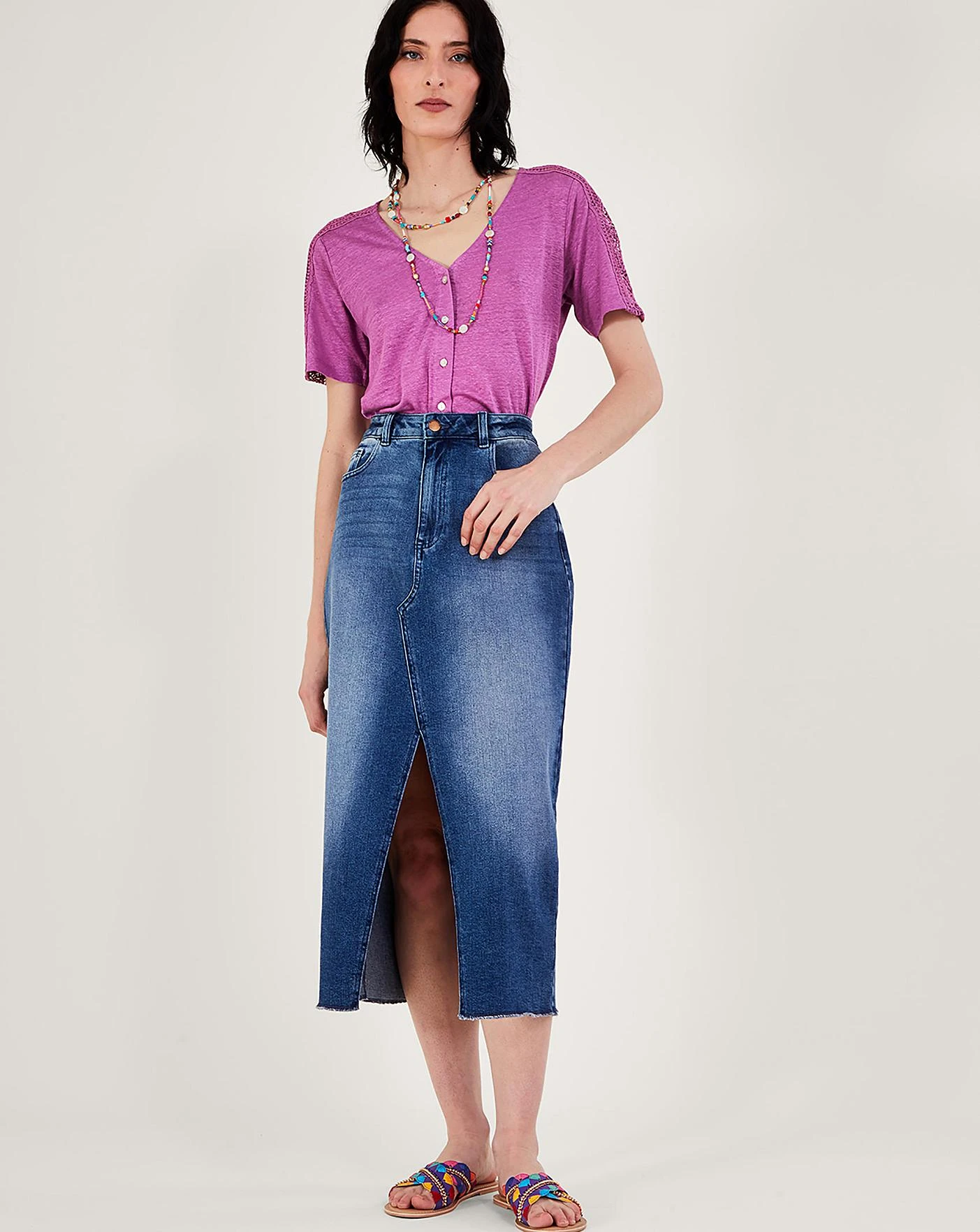 - Monsoon Button Lace Linen T-Shirt