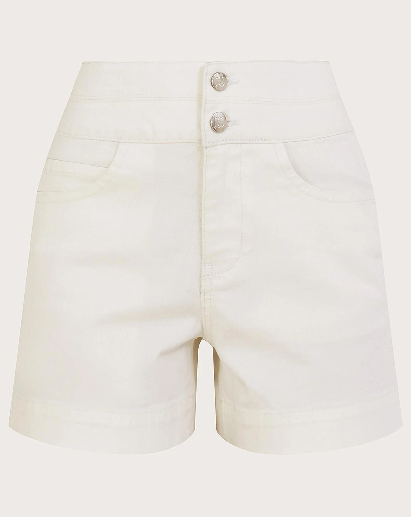 - Summer just isn’t the same without a pair of denim shorts on hand. This pair is designed with a high-waisted silhouette and a secure double-button fastening to finish. Style them with a simple cami, or opt for a more smart-cas’ look with a light and airy blouse. As part of the journey to make our clothes kinder to the world around us, this item was made using more sustainable raw materials, such as organic cotton, recycled polyester and viscose from responsibly grown forests.