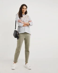 Blue Stripe Soft Touch Colour Block Pocket And Yoke Detail Long Sleeve Top| Blue Stripe
