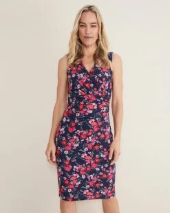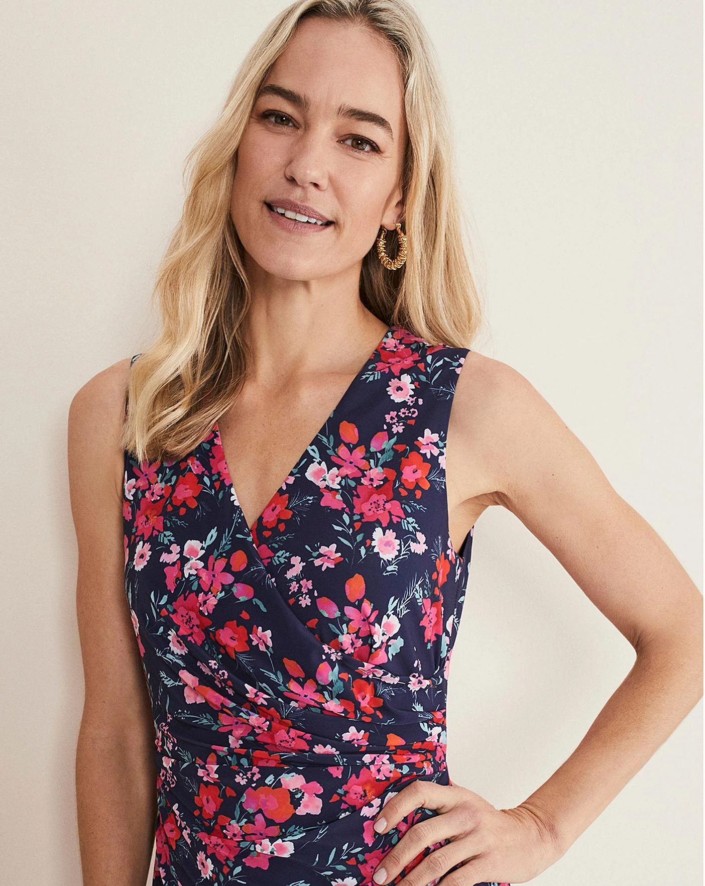 The perfect dress for your next occasion. Our Aurelia dress is designed with a beautiful floral print and features a statement wrap bodice. We’ve styled ours with red heels and a matching red clutch bag.