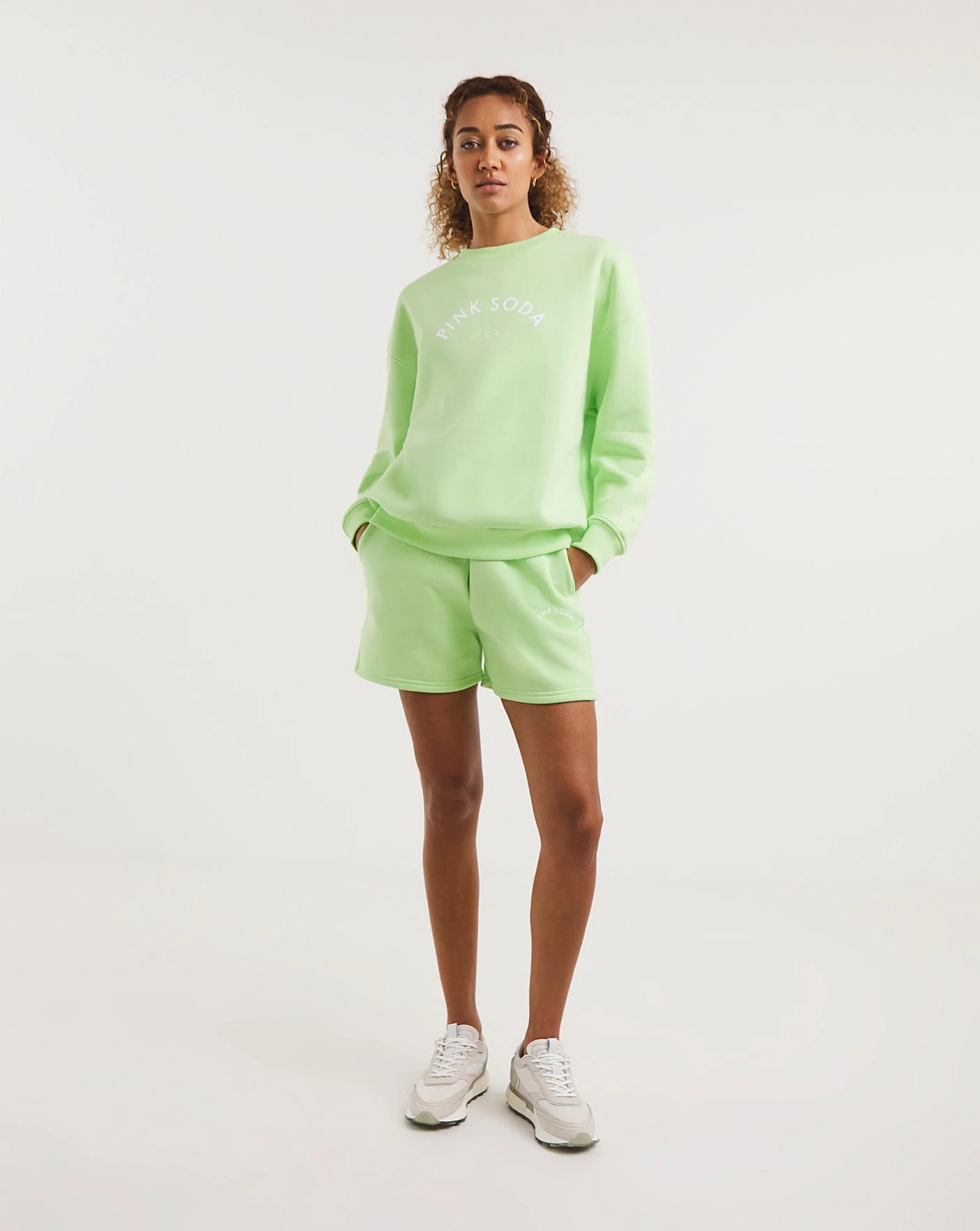 Add a bold touch to your workout look with the Krome Fleece Shorts. Featuring a Green colourway and a high waisted design and drawstring adjustable waistband to make it unique to you. Also while giving you that relaxed fit on the thighs, finally finished off with the Pink Soda arched branding to the thigh.