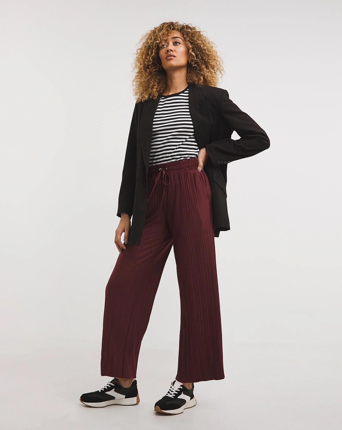 Our soft jersey ‘plisse’ pleat-look fabric with fully elasticated waist for maximum comfort. An easy to wear pull-on style, featuring a functional draw-string detail with tie front. A flattering straight leg shape which creates a sophisticated silhouette.
