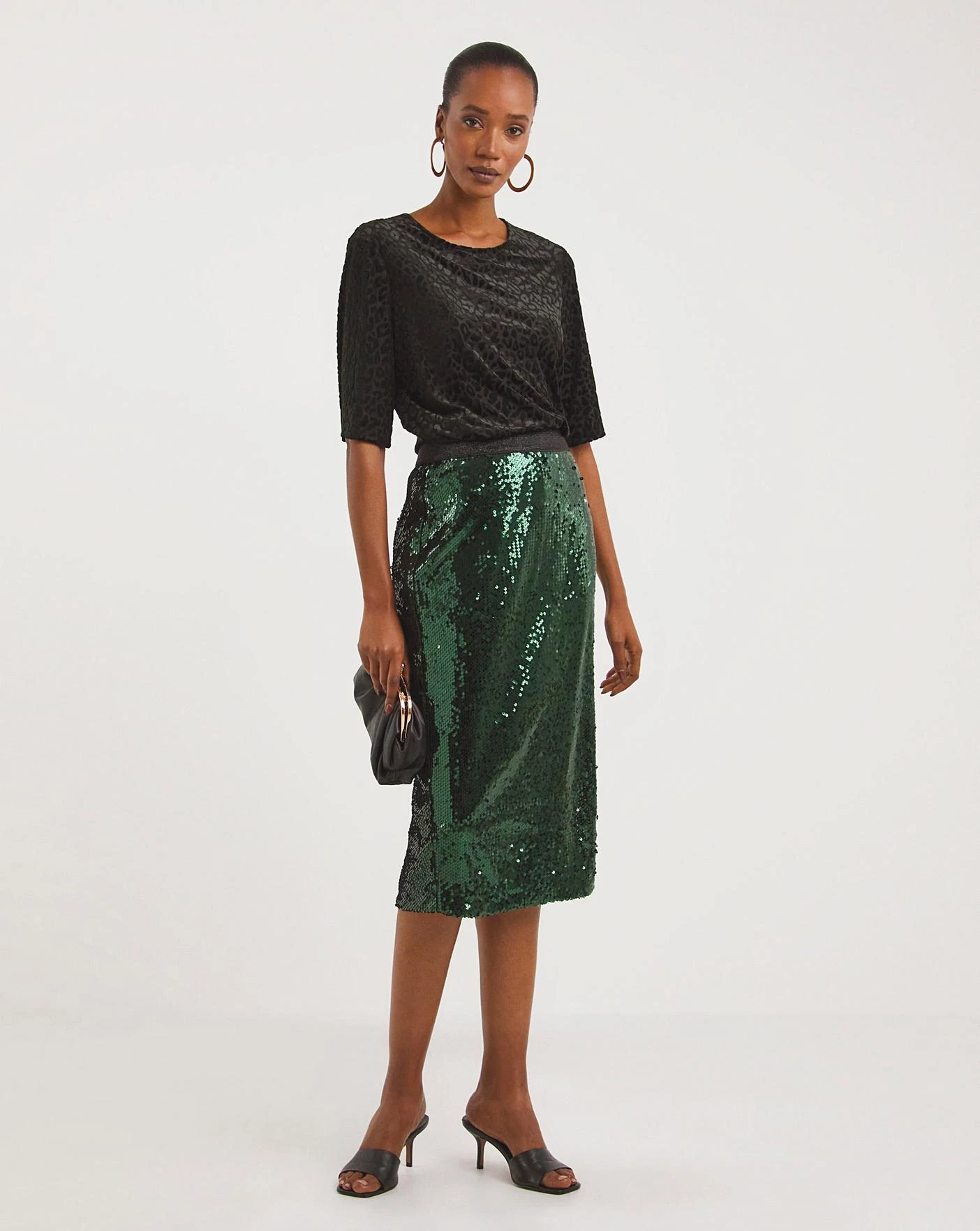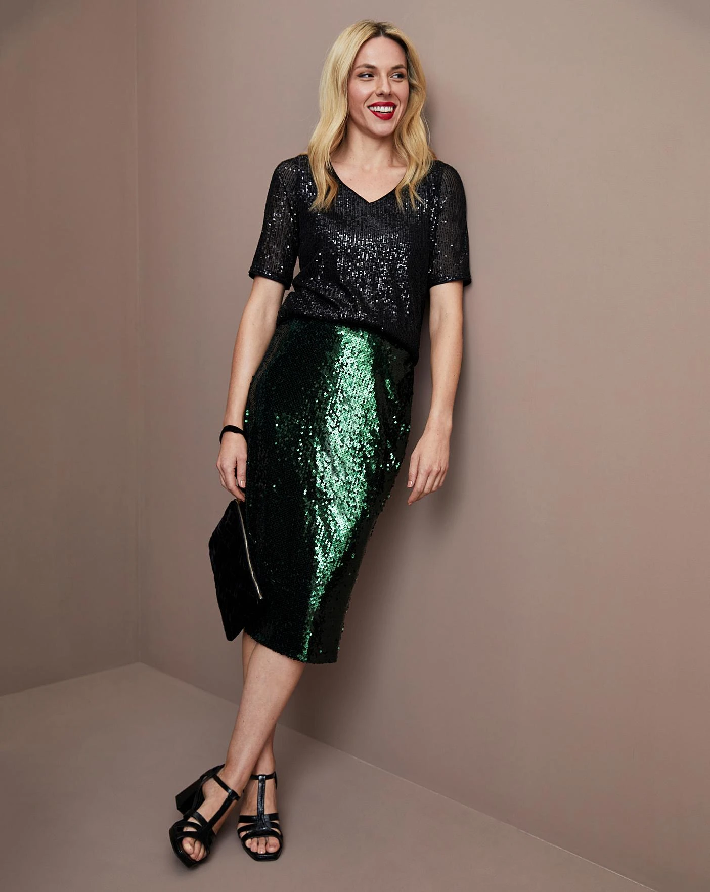 Make sure you shine in this great easy-to-wear pull-on sequin skirt. Get ‘party ready’. Fully elasticated waist for fit.