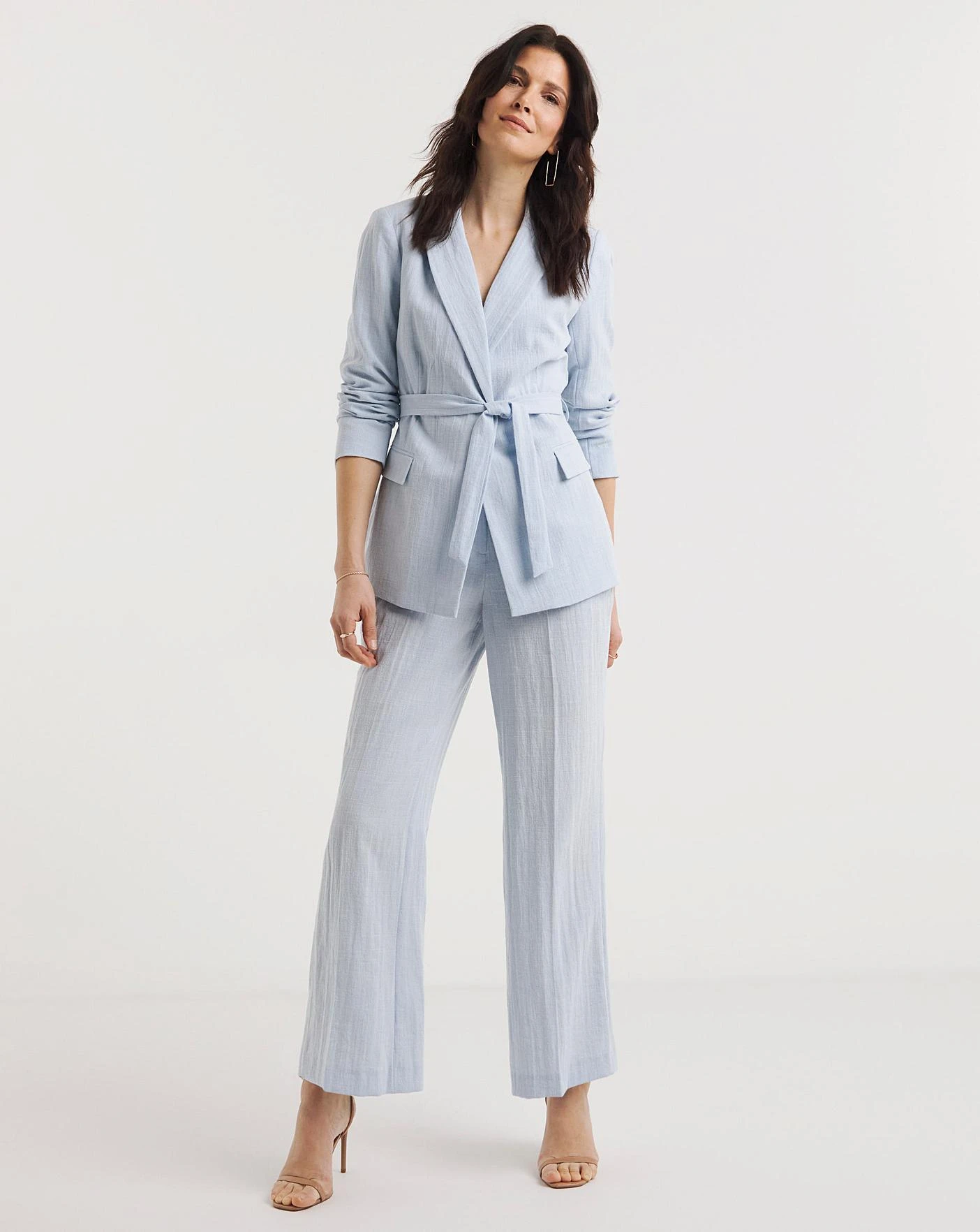 Crafted in a premium Lyocell blend fabric with a subtle texture, these Wide Leg Trousers create an elegant tailored look, fit for any occasion. The contemporary wide-leg cut features side pockets for practicality and a hook and eye front fastening. Complete the look and pair with the coordinating Tie Detail Blazer.