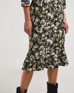 Prepare to turn heads, that silhouette will turn heads, sexy bardot neckline, elasticated waist for comfort and style, swishy asymmetric ruffle hem, flat sandals espadrille wedges strappy heels – so many ways to wear it.