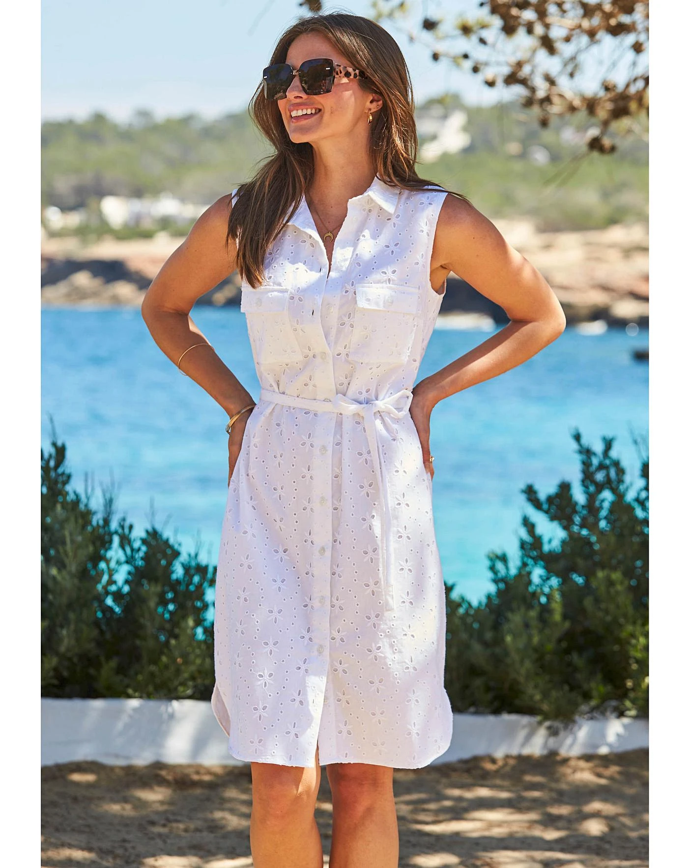 A dress for having fun in, this broderie shirt dress is perfect for any summers day, lunch with the girls, or your holiday attire and you won’t find it anywhere else, we love it with espadrille wedges.