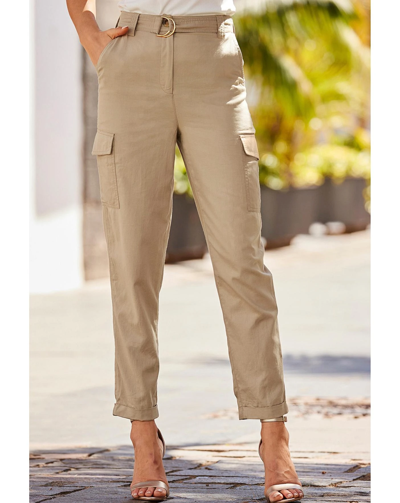 Your jeans deserve a day off, on-trend functional cargo pockets, belted high waist to show off your waist, flattering tapered legs and ankle grazing hem, warm-weather-friendly lightweight fabric, dress them down with a tee and sandals up with a cami and heels.