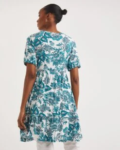 Joe Browns Floral Tunic With Pom Pom Detail| Blue Multi-coloured